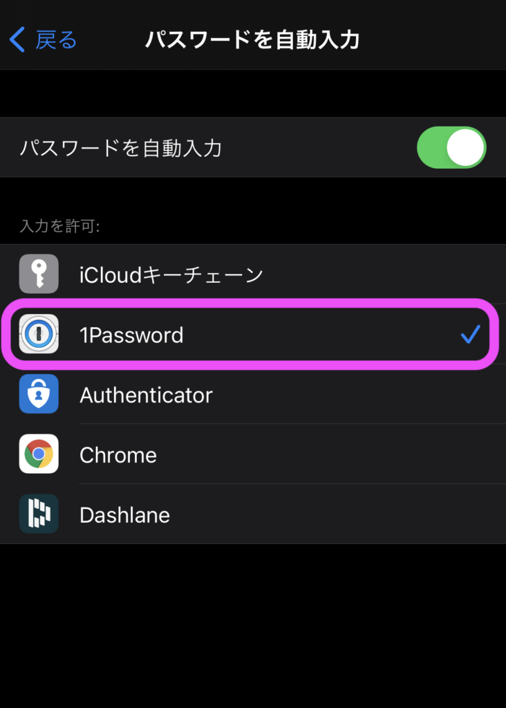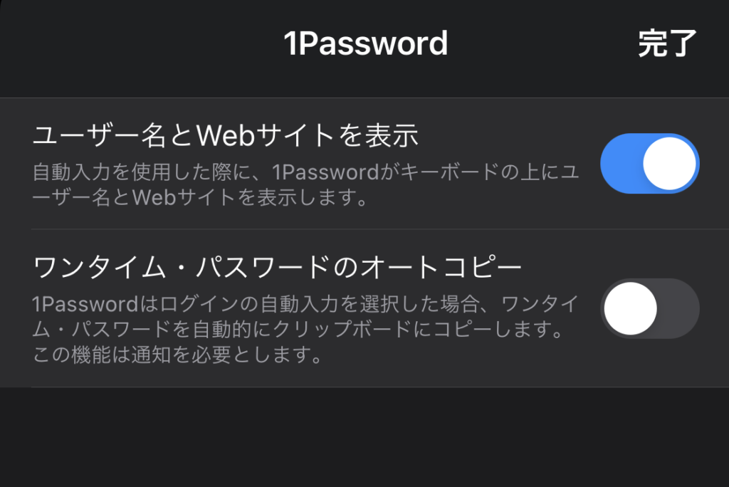 1Password でパスワードを一元管理するのであれば、1Password のみにチェックすることをオススメします。