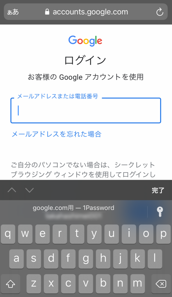 Safari の場合、正しく設定できていたら、ID やパスワードを入力する際に、以下のように 1Password から入力することができるようになります。